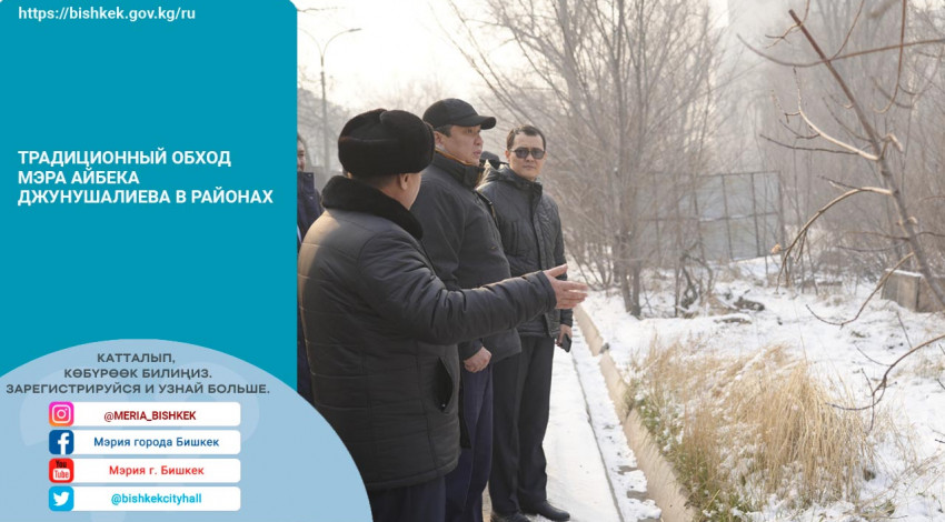 В городе Бишкек мэр Айбек Джунушалиев провел обход на территории Октябрьского района совместно с руководителями городских служб.