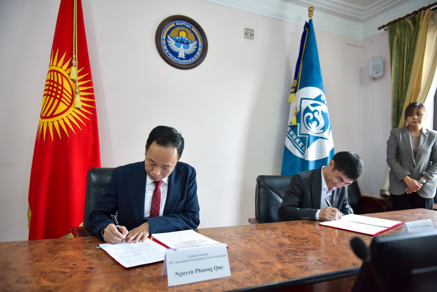 В зале заседаний с участием мэра Айбека Джунушалиева прошла церемония подписания Соглашения о государственно-частном партнерстве по реализации проекта «Реконструкция и модернизация очистных сооружений города Бишкек» между мэрией города Бишкек в лице начальника МП «Бишкекводоканал» и консорциумом компаний «SFC Investment Development for Environment» и «Phu Dien Investment Construction and Trading» (Вьетнам).