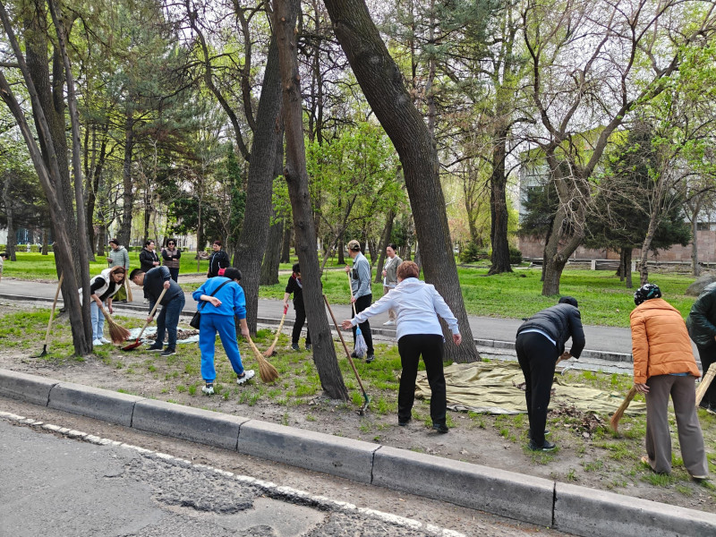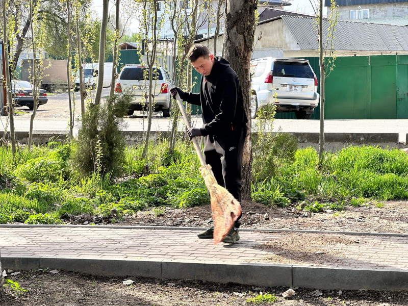В городе Бишкек продолжается двухмесячник по благоустройству, санитарной очистке и озеленению.
