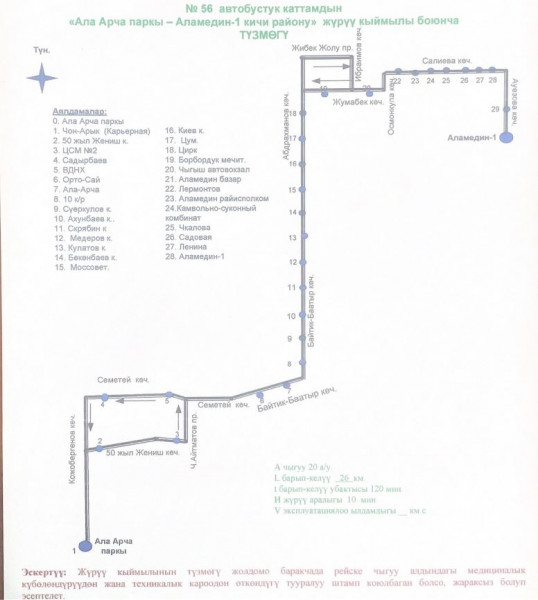 Теперь в направлении Аламедин-1 маршрут проходит по следующим улицам: