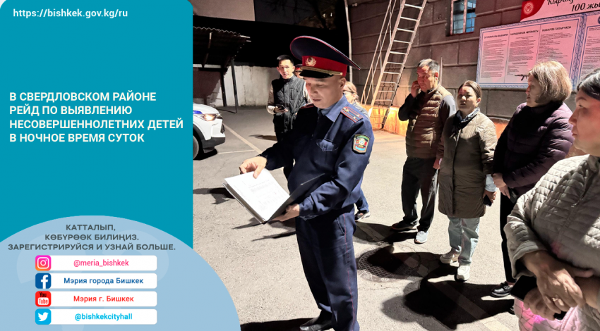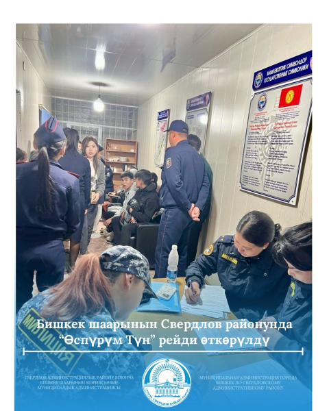 Муниципальная администрация мэрии города Бишкек по Свердловскому административному району провела рейд «Подросток ночь».