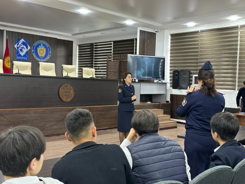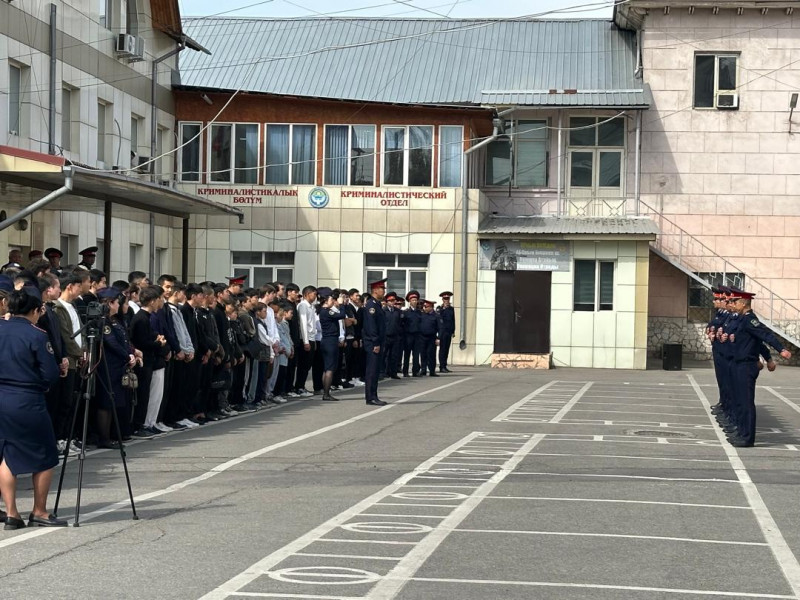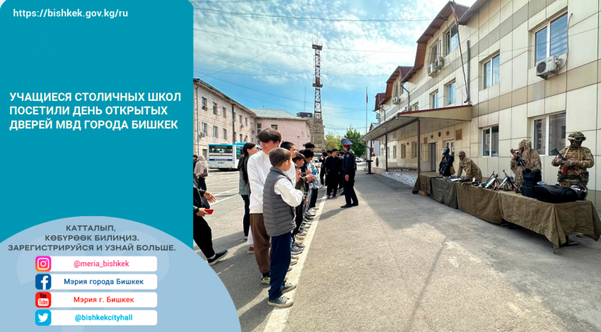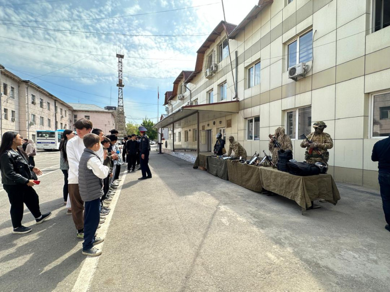 Сегодня, 23 апреля 2025 года, 130 учащихся столичных школ в сопровождении заместителя директора по воспитательной работе и инспектора ИДН посетили День открытых дверей МВД города Бишкек.
