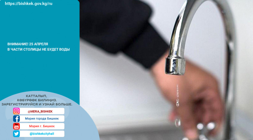 МП «Бишкекводоканал» приносит извинения за доставленные неудобства и просит организации, население заранее запастись питьевой водой.
