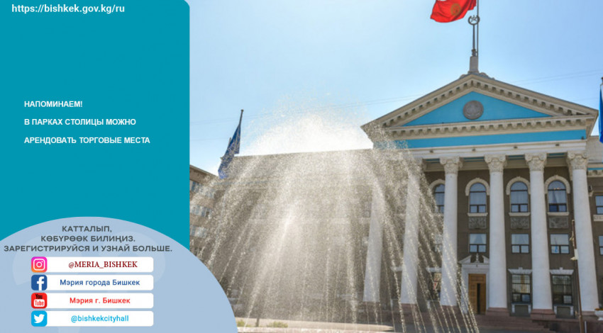 С 25 апреля 2025 года начинается прием заявлений на аренду мест в 16 парках города Бишкек для продажи мороженого, напитков, кофе, попкорна, сладкой ваты, детских игрушек, аренды велосипедов, детских машин, силомеров, каркасных батутов, паровозов, медиа-развлечений.