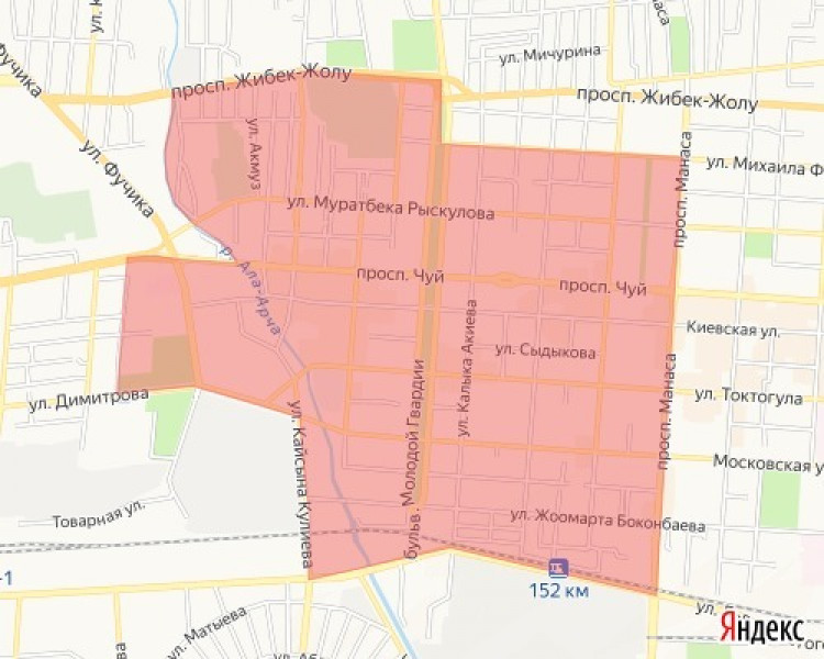 - бул. М. Гвардии - линия железной дороги – ул. Фрунзе – пр. Манаса;