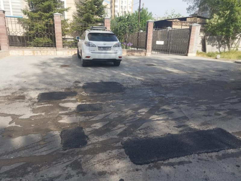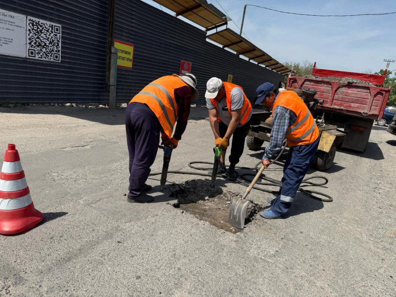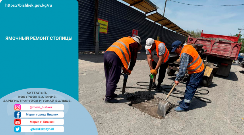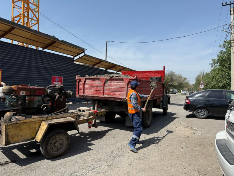 Так, бригада предприятия на данный момент закрывает ямы по улице А.Табалдиева от пр. Ч.Айтматова до ул. И.Ахунбаева.