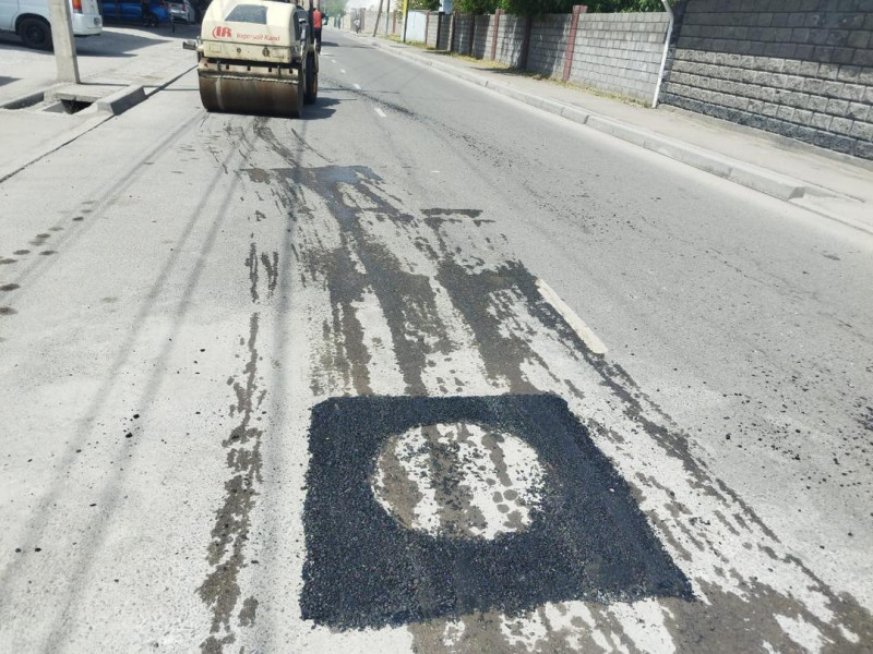 Муниципальное предприятие «Бишкекасфальтсервис» наряду с капитальным ремонтом продолжает закрывать дорожные дефекты в столице.
