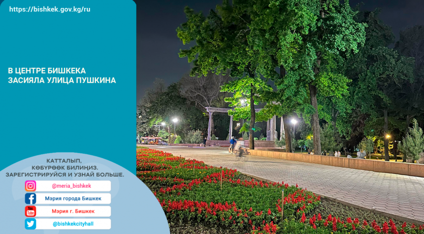 Муниципальное предприятие «Бишкексвет» завершило монтаж наружного освещения на участке улицы Пушкина от улицы Раззакова до улицы К. Тыныстанова. Этот район давно стал излюбленным местом прогулок и вечернего велопробега среди горожан.