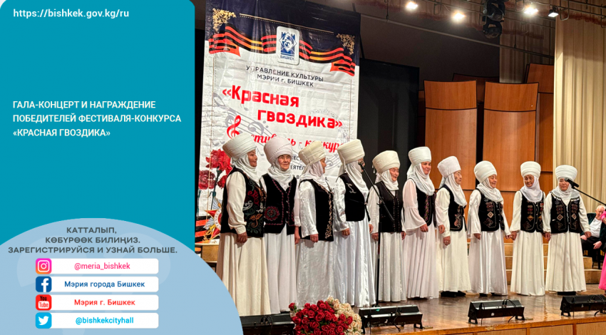 Сегодня, 7 мая 2025 года в Большом зале Кыргызской Национальной консерватории имени К. Молдобасанова состоялся гала-концерт и церемония награждения победителей XXIV фестиваля-конкурса «Красная гвоздика», приуроченного к 80-летию Победы в Великой Отечественной войне 1941–1945 годов.