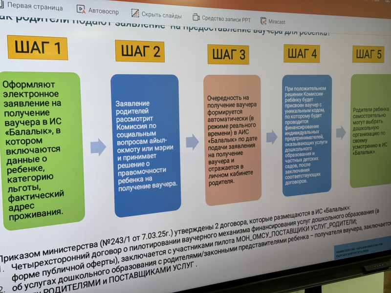 На встрече приняли участие представители Министерства просвещения Кыргызской Республики отдела дошкольного образования и центра цифрового образования, районных Управлений образования, социального развития, районного финансового отдела, а также руководители частных детских садов и потенциальные получатели ваучеров – семьи в трудной жизненной ситуации.
