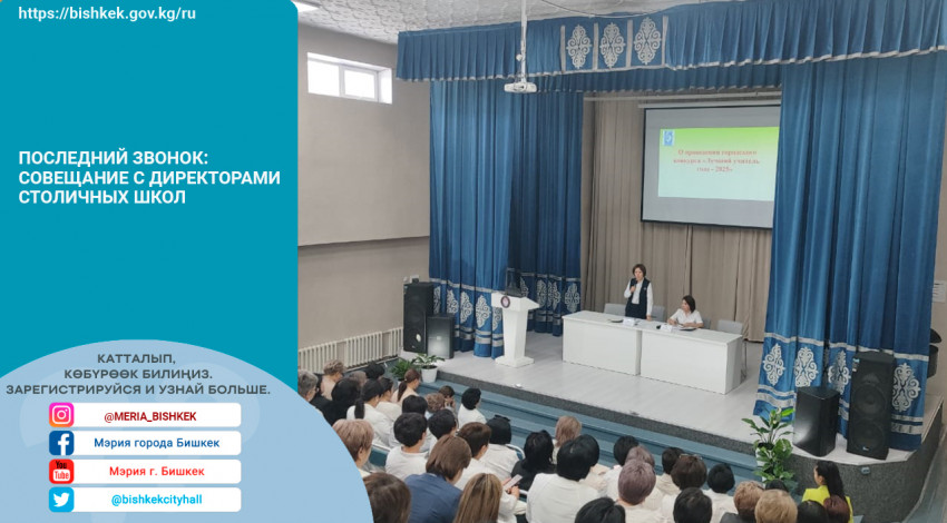 Также заслушана информация о контрольно-методических выходах в общеобразовательные организации города Бишкек 2024-2025 учебного года, итоги конкурса “Лучший учитель 2025 года” и обсуждены другие важные вопросы, касающиеся завершения учебного года.