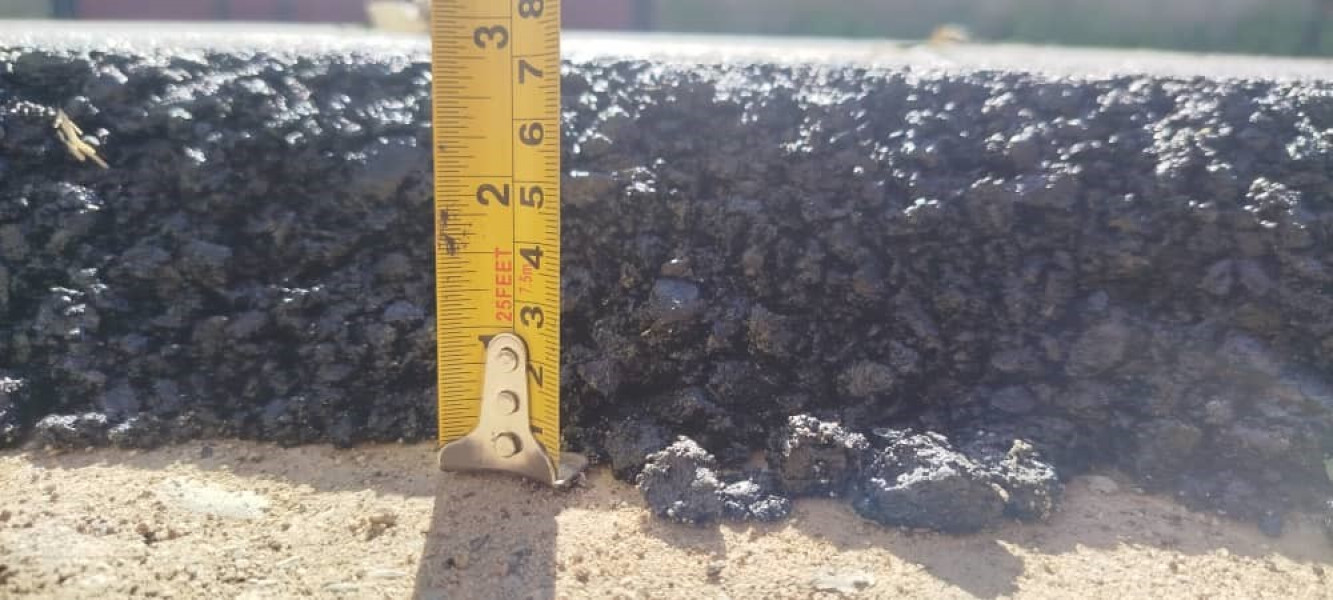 На месте информация о том, что толщина асфальтобетонного слоя тонкая, не подтвердилась. При измерении толщина асфальтобетонного слоя составила 6 см.