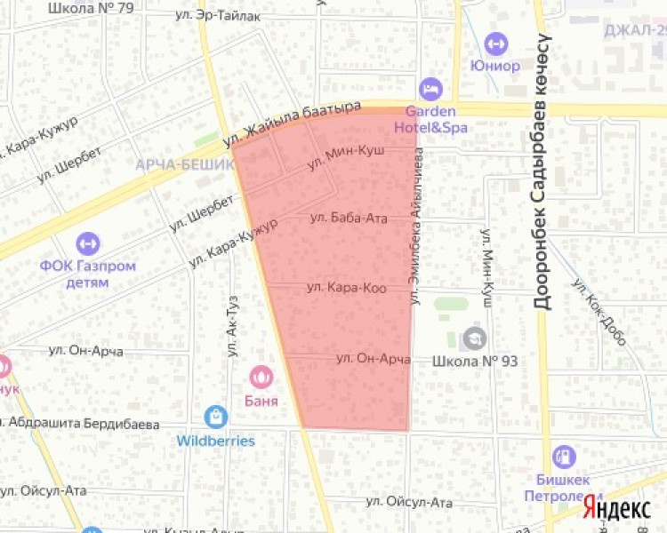- ул. Шералиева – ул. Бердибаева – ул. Айылчиева – ул. Жайыл Баатыра.