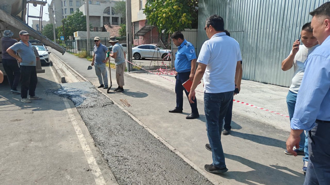 По улице Жумабека, 199 рабочие самовольно забетонировали ирригацию в целях создания технического заезда. Данные действия нарушили статью 179 части 1 Кодекса КР о правонарушениях.