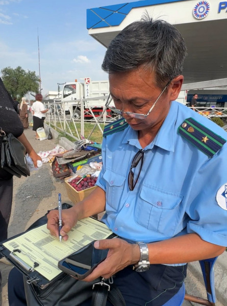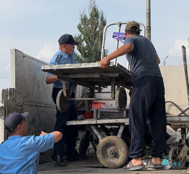 Со стороны Муниципальной инспекции мэрии города Бишкек продолжаются рейды по борьбе со стихийной торговлей на Аламединском рынке. В отношении нарушителей правил торговли составляются протоколы согласно части 2 статьи 286 кодекса Кыргызской Республики о правонарушениях. Сумма штрафа для физических лиц - 3000 сомов. Дополнительно была проведена процедура по временному изъятию предметов правонарушения на основании статьи 36 Кодекса КР о правонарушениях.
