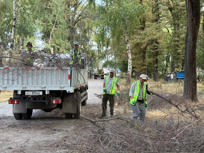 Более 100 работников МП «Бишкекзеленстрой» наводят порядок на территории парка. В настоящее время проводятся работы по выкорчевке старых деревьев, покосу сухостоя, очистке территории и приведению в порядок прогулочных зон. Все мероприятия направлены на создание комфортных условий для отдыха жителей района.