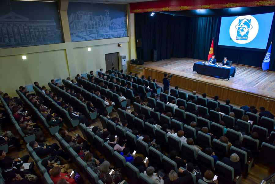 В зале «Таберик» под председательством мэра Бишкека Айбека Джунушалиева состоялось заседание городского штаба, созданного в соответствии с Указом Президента КР № 272 «О назначении досрочных выборов депутатов Жогорку Кенеша Кыргызской Республики» от 30 сентября 2025 года.