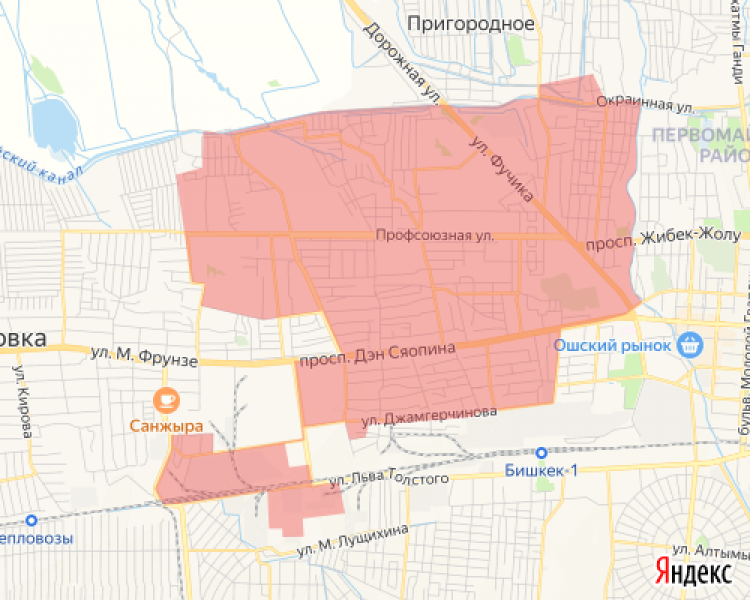 •Квадрат 2. ул.Садыгалиева –ул.Д.Сяопина –ул.П.Лумумбы –ул. Волковой –ул.Кустанайская далее ул.Алимжан-Ата –БЧК –ул.Ленская –ул.Космонавтов –ул.Коммунарова –БЧК –р.Ала-Арча –ул.Рыскулова –ул.Д.Сяопина –ул.Пишпекская –ул.Джамгырчинова –ул.Кайназарова –пер.Гатчинский –ул.П.Лумумбы –ул.Джамгырчинова до ул.Садыгалиева;