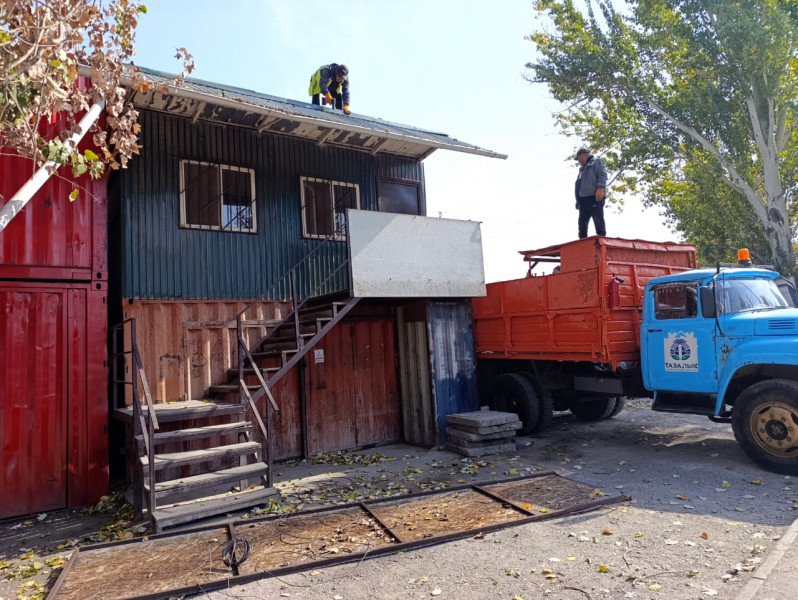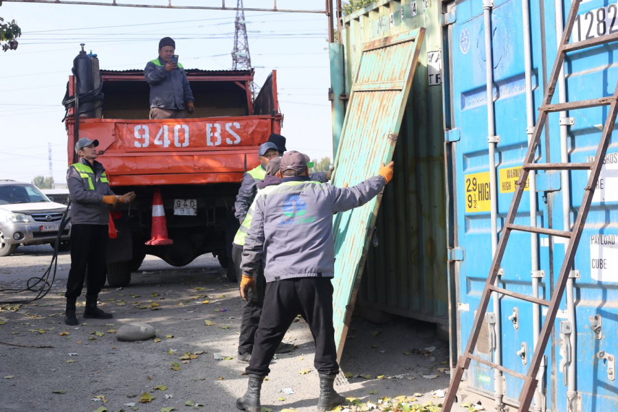 Сотрудники Управления по контролю за землепользованием мэрии города Бишкек проводят демонтаж объектов, функционирующих не по целевому назначению.