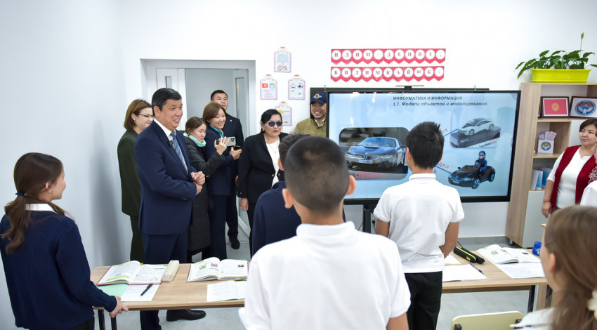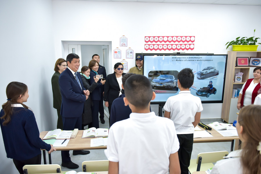 Мэр Бишкека Айбек Джунушалиев ознакомился с работой нового филиала школы, открытого на базе жилого комплекса «Мурас», построенного Государственной ипотечной компанией (ГИК).