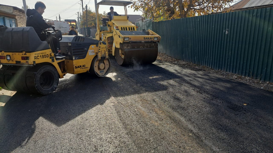 В Бишкеке муниципальное предприятие «Бишкекасфальтсервис» продолжает капитальный ремонт дороги на улице Армейской.