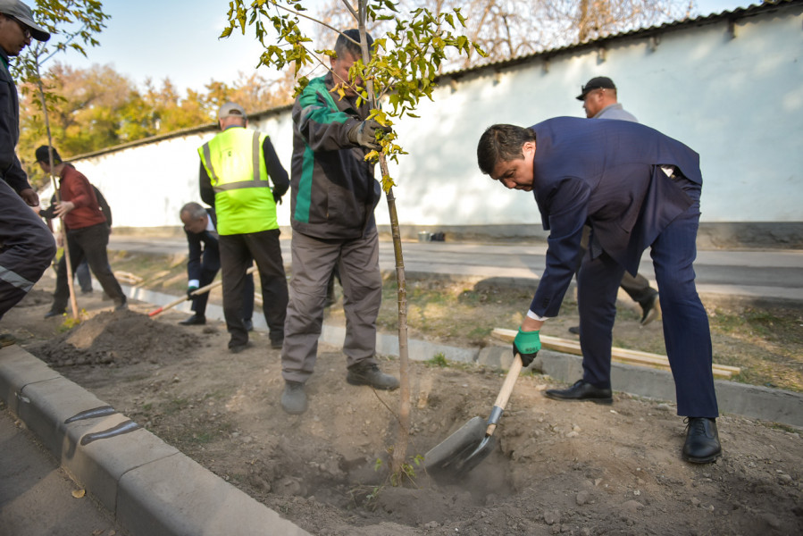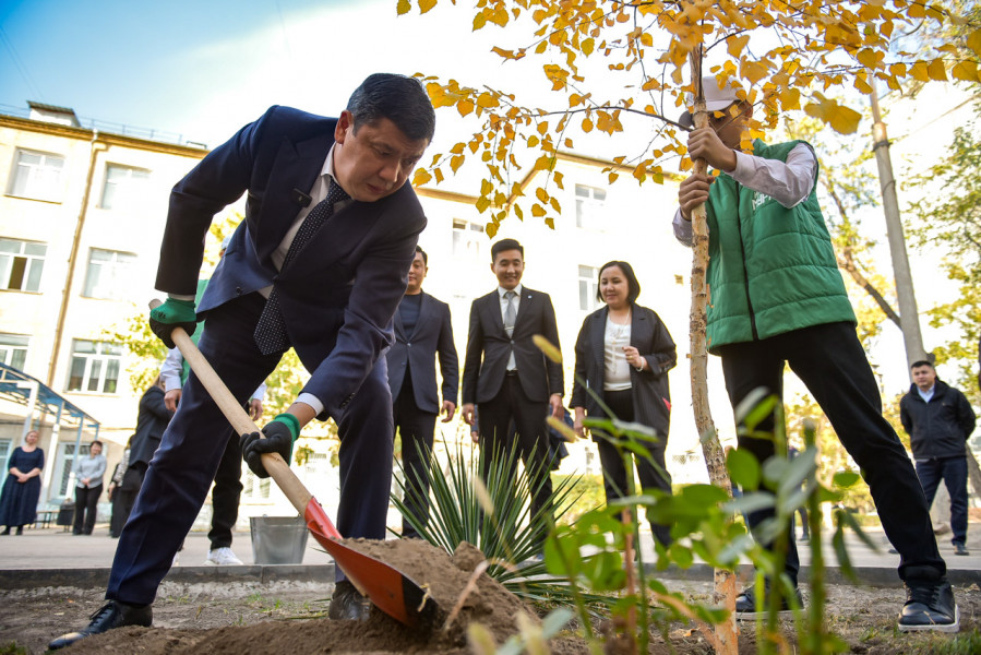 Мэр Айбек Джунушалиев вместе с министром природных ресурсов, экологии и технического надзора КР Медером Машиевым посадили саженцы на территории школы №12 в Свердловском районе.