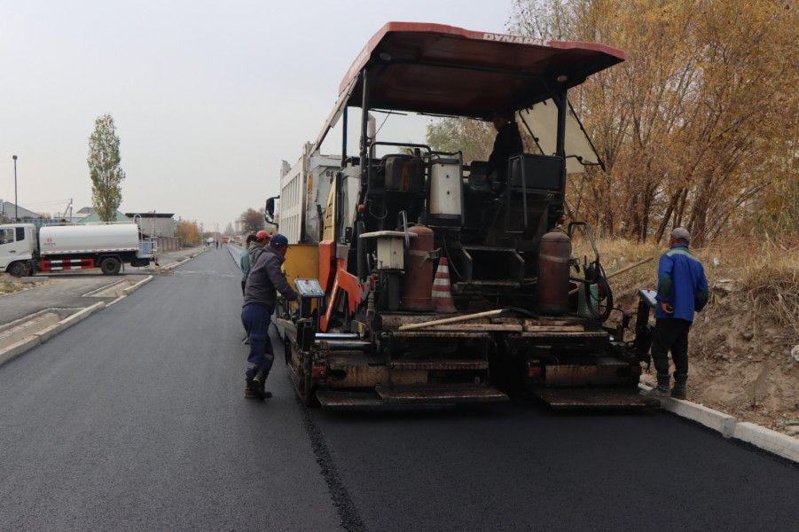 В Полицейском городке Октябрьского района города Бишкек ведутся работы по асфальтированию улицы Кадыр-Ата.
