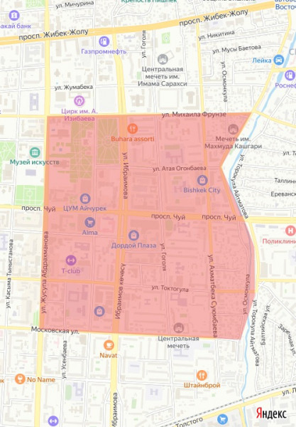 Ул.Осмонкула от пр.Чуй до пр.Жибек Жолу ,ул.Московская.