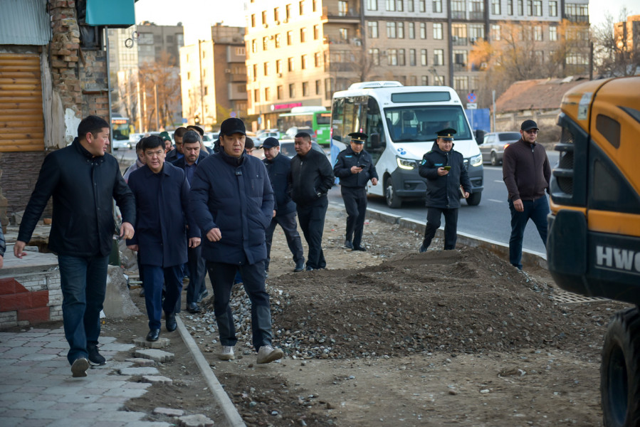 В завершении объезда Айбек Джунушалиев осмотрел улицу Фучика, где ведется реконструкция тротуаров, и дал поручение усилить контроль за качеством выполняемых работ.
