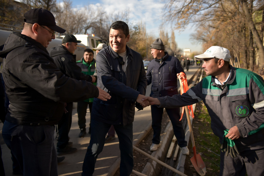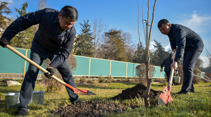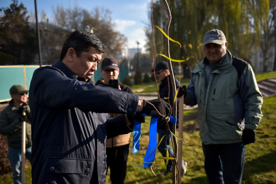 Мэр столицы Айбек Джунушалиев принял участие в осенней высадке деревьев, которая прошла в рамках мероприятий по озеленению города.