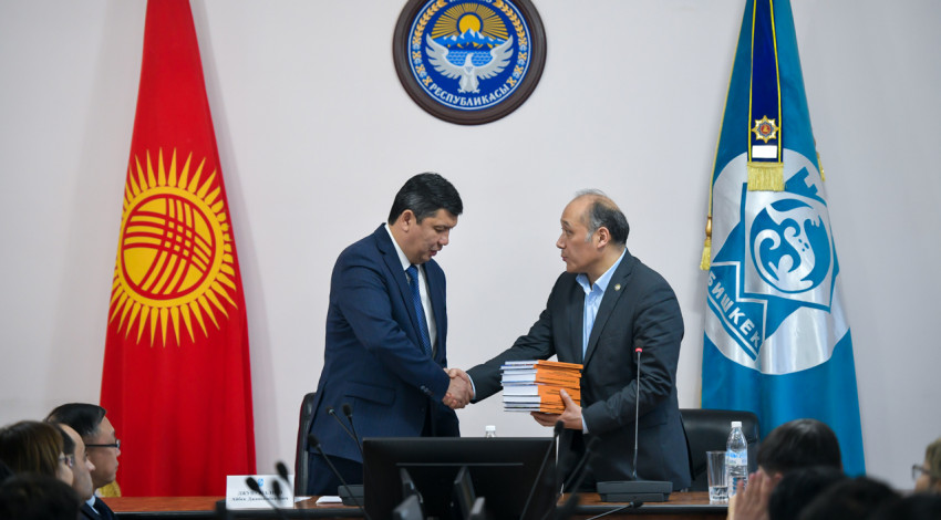 В зале заседаний столичного муниципалитета прошло совещание с участием мэра Айбека Джунушалиева и председателя Национальной комиссии по государственному языку и языковой политике при Президенте Кыргызской Республики Мелиса Мураталиева.