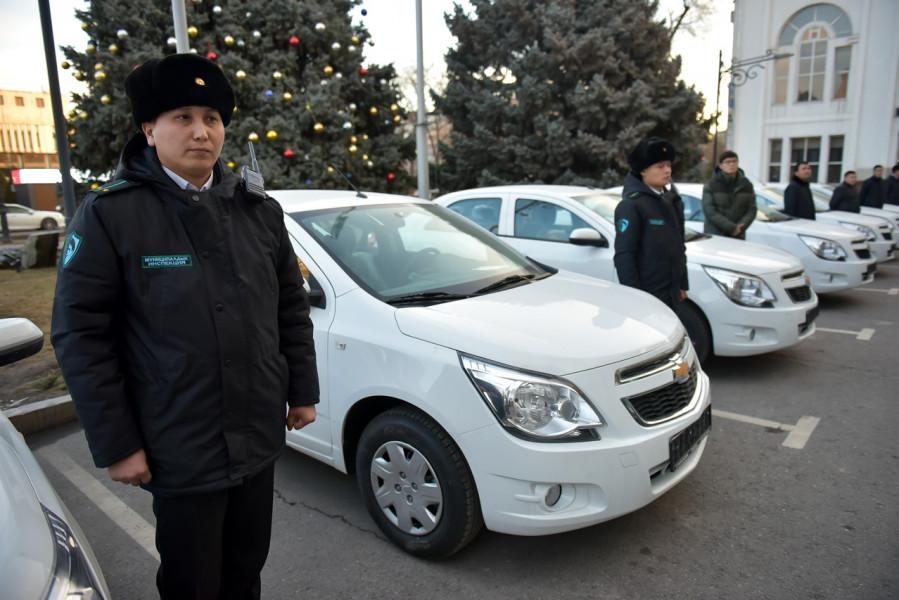 В преддверии Нового года мэр города Айбек Джунушалиев вручил служебные автомобили Муниципальной инспекции и районным администрациям.