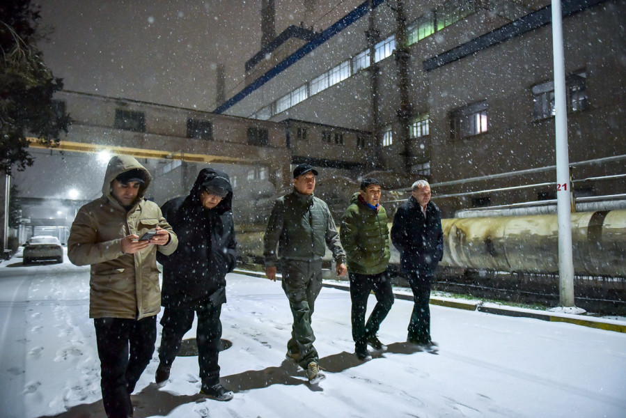 В связи с резким понижением температуры воздуха мэр города Бишкек Айбек Джунушалиев и заместитель мэра Нургазы Курманбеков провели обход на территории Бишкекской теплоэлектроцентрали. В ходе визита глава столицы ознакомился с текущим температурным режимом и электрическими нагрузками станции, а также проверил готовность предприятия к работе в условиях повышенной нагрузки.
