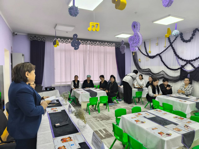 Темой семинара стала: «Кыргыз эл жомокторуна саякат». В рамках мероприятия участникам продемонстрирован фрагмент занятия воспитателя ДОО №3 Гульнур Конокбаевой, в ходе которого представлены практические методы использования кыргызских народных сказок в образовательном процессе дошкольников.