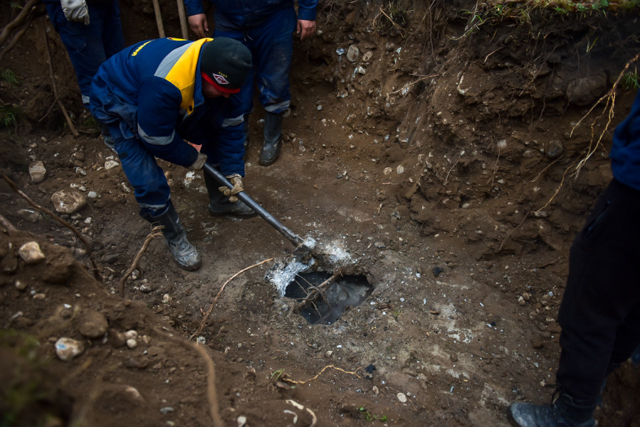 В ликвидации аварии задействованы 5 единиц специализированной техники: автокран, экскаватор, передвижная насосная станция и два специализированных фургона.