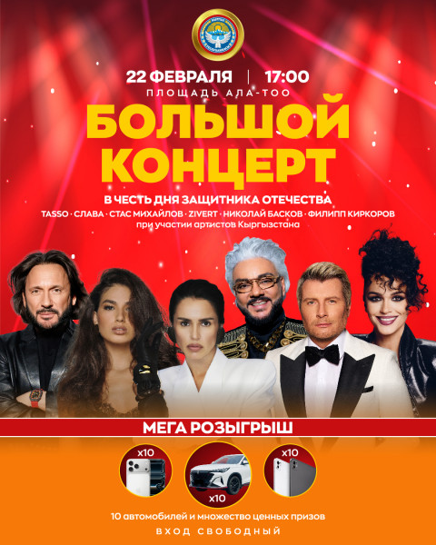 22 февраля в 17:00 состоится праздничный концерт с участием звезд кыргызской и российской сцены.