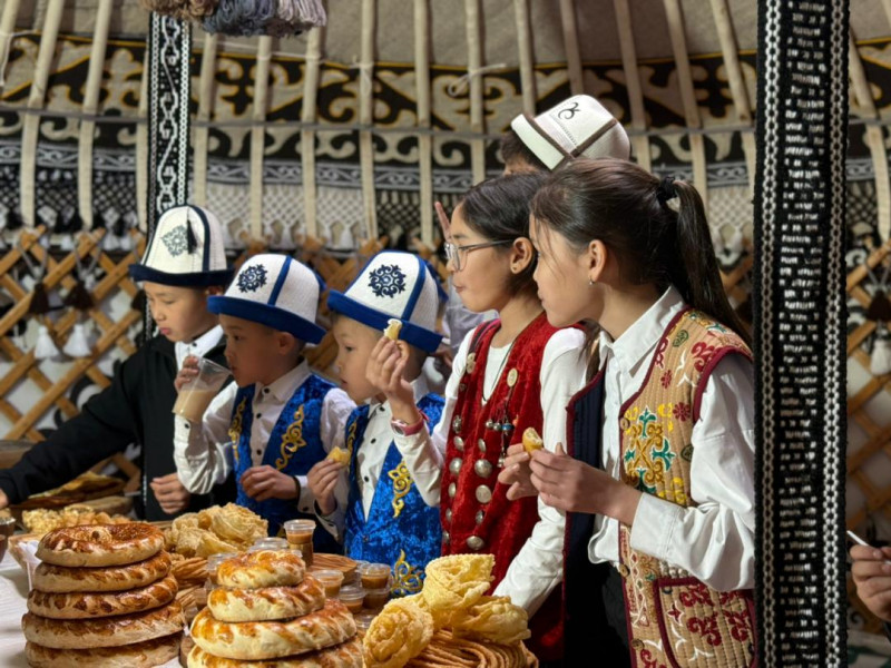 В отдельной юрте была организована зона национальных угощений, где гостям предлагались традиционные блюда и напитки кыргызской кухни.