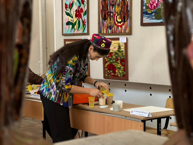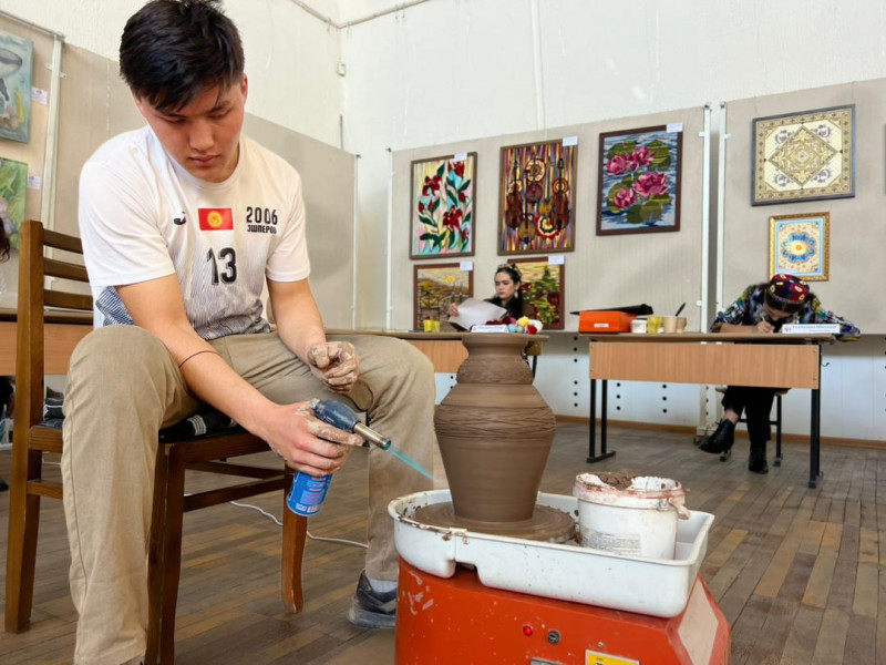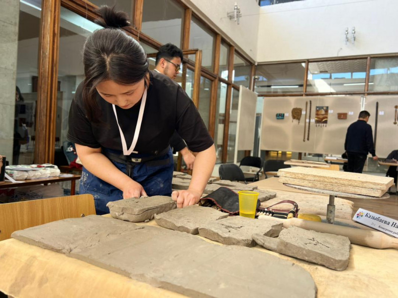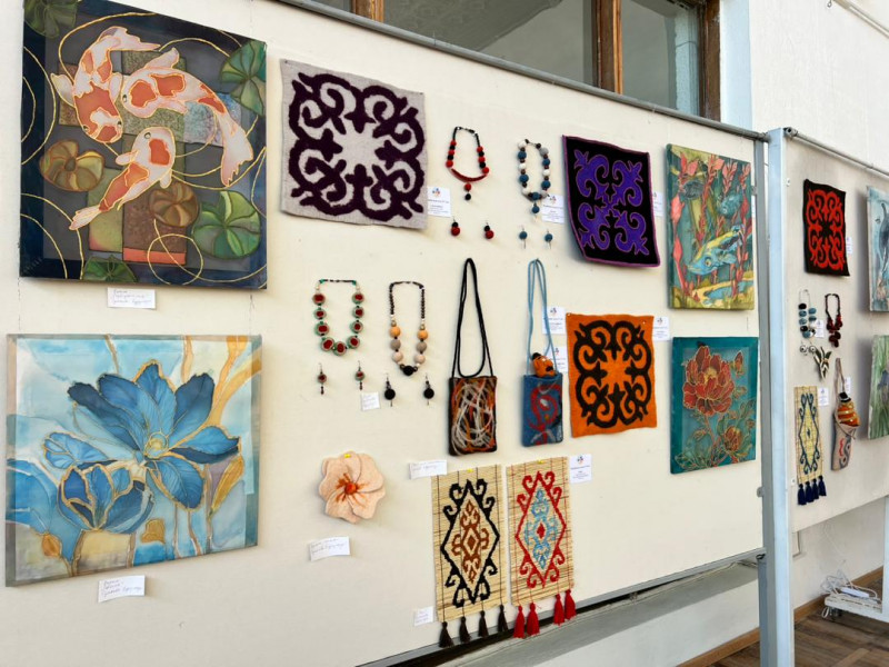 В ней молодые мастера представляют национальные ремесленные изделия: шырдак, ала кийиз, ткачество, вышивку, керамику, работы по коже, резьбу по дереву, ювелирное искусство.