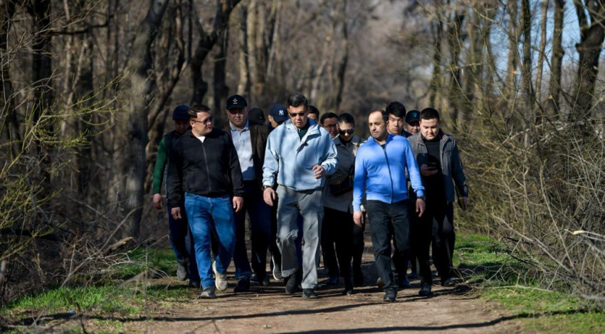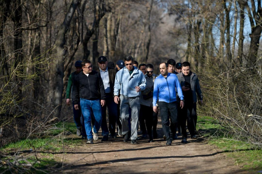 Мэр города Бишкек Айбек Джунушалиев ознакомился с первым этапом работ по благоустройству территории вдоль Большого Чуйского канала — от бульвара Молодой Гвардии до улицы Элебаева.