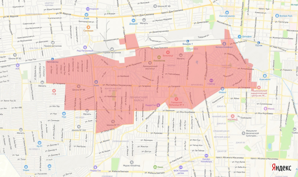 - Жилой массив «Ак-Ордо» (северная часть от ул.Ахунбаева);