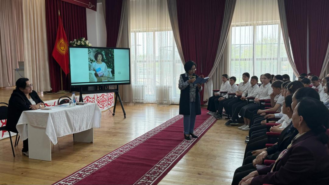 В рамках Декады чтения, организованной Фондом Розы Отунбаевой, Управлением образования и школьным коллективом, для учащихся 6-х классов состоялась творческая встреча с поэтессой, журналистом, заслуженным деятелем культуры КР, лауреатом литературных премий «Алтын калем» и имени Алыкула Осмонова, членом Союза писателей Кыргызстана, а также Евразийского и ТЮРКСОЙ объединений писателей Бурулкан Сарыгуловой.