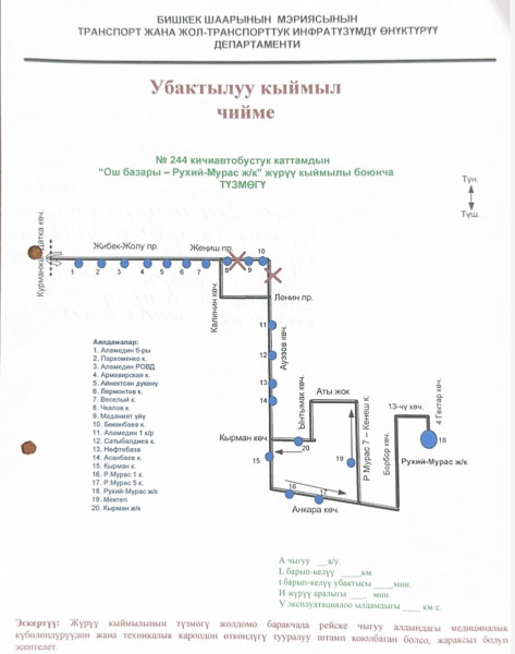 В целях оптимизации системы общественного транспорта города Бишкек и сокращения средней протяженности маршрутов внесены изменения в схему движения микроавтобуса №244.