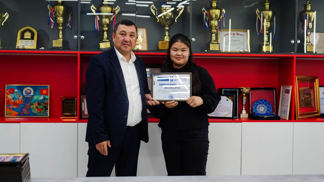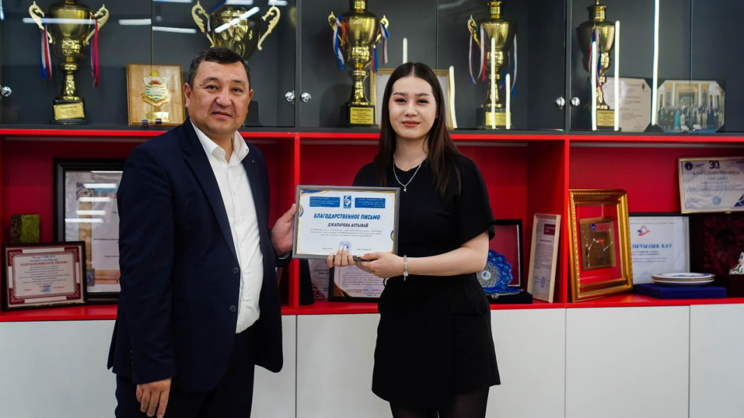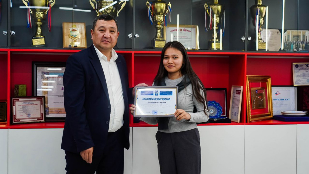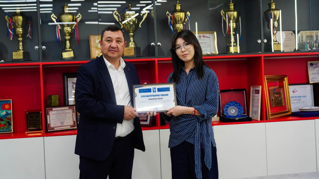 Благодарственными письмами награждены студенты: Эрикова Акшоола, Абдирашитова Акылай, Джапарова Алтынай, Арсыматова Адина, Атанбекова Айжан, Бейшенгазиева Айайым, Сейтказыева Мирсеида, Суранова Аделя, Сабайалиев Аслан, Акбарали кызы Элмира, Бактыбекова Адина, Акматалиева Айгерим, Максимова Аделина, Аргынбаева Аяна, Номанов Адилет, Тукеева Аэлита, Мырсалиева Жасмин, Камалов Хасанжон, Сражидинов Акматали, Садыкова Камила, Сыдыкова Каныкей, Рысбекова Асема, Бактыбекова Аяна, Пархоменко Илья, Ашимов Урмат, Калиева Рабия и Алмазбеков Байэл.