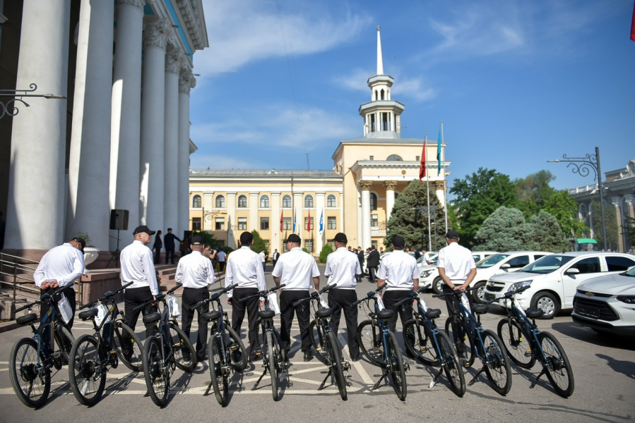 Мэр города Бишкек Айбек Джунушалиев вручил ключи от 11 новых служебных автомобилей, а также передал 10 современных электровелосипедов, предназначенных для повышения мобильности и эффективности работы городских служб.