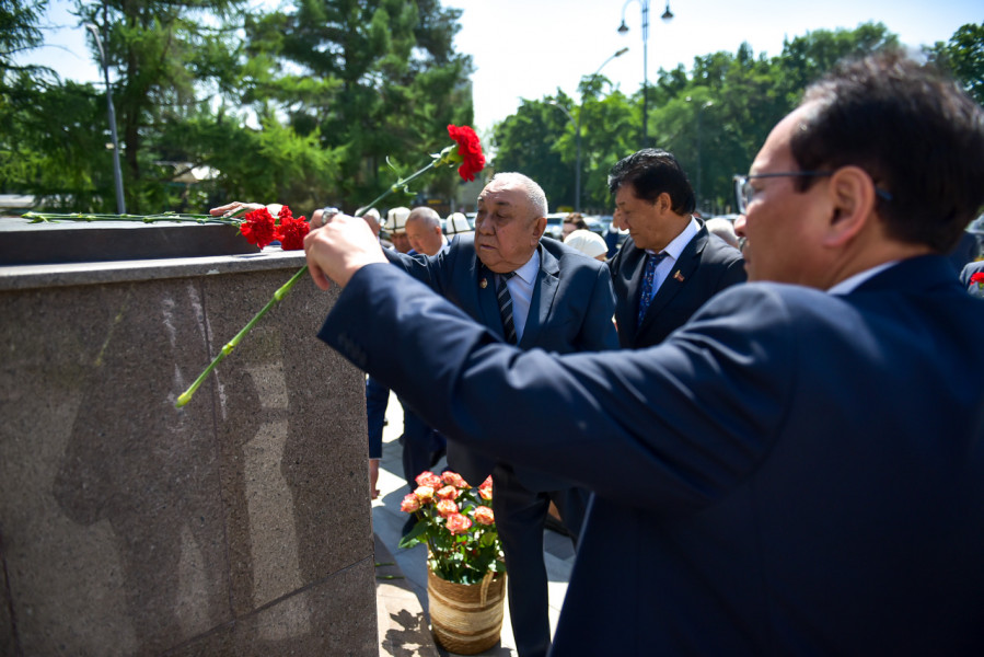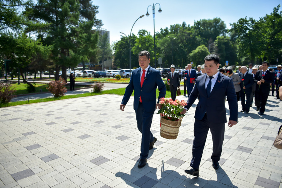 В рамках официальных мероприятий, посвященных Дню города Бишкек, состоялась церемония возложения цветов к памятнику Бишкек баатыру.