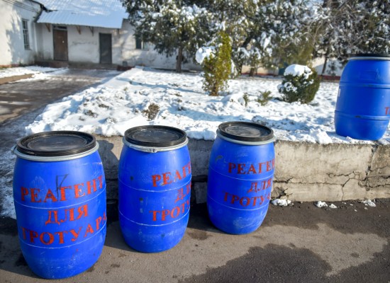Синие бочки против гололеда