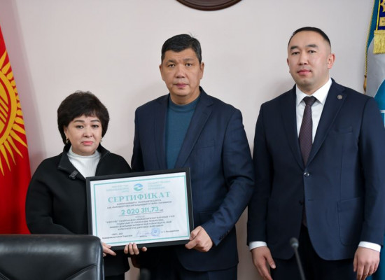 Дому престарелых «Үмүт үйү» вручен страховой сертификат на 2 млн сомов