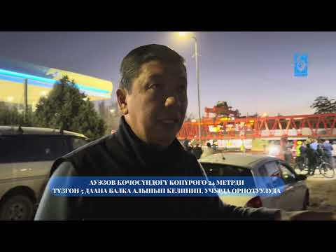 Ауэзов көчөсүндөгү көпүрөгө 24 метрди түзгөн 5 даана балка алынып келинип, учурда орнотуулуда